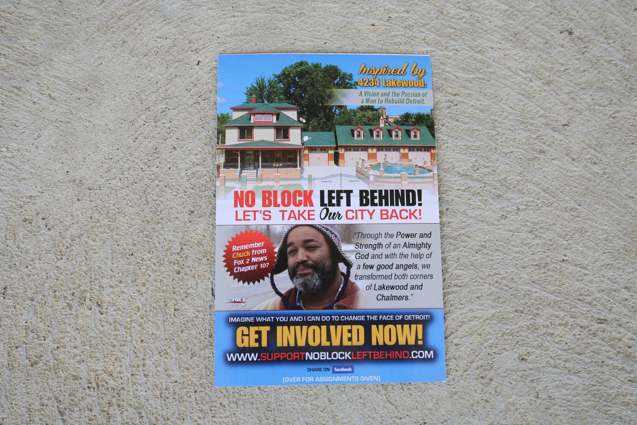 Charles E. Brooks Jr. - "Surviving Detroit" CD $25.00 Inspiration, Motivation! - "Bucket Hat" (Grey) $20.00 Inspiration, Motivation! - "Bucket Hat" (Blue) $20.00 I Support No Block Left Behind "Bucket Hat" (Black) $20.00 I Support No Block Left Behind "Bucket Hat" (Red) $20.00 No Block Left Behind “BRIX N DA MIX” FAN (BLUE) $25.00 I Support No Block Left Behind "Fan" (Grey) $25.00 I Support No Block Left Behind "Fan" (White) $25.00 No Block Left Behind “MOTIVATION” FAN (BLUE) $25.00 No Block Left Behind "Inspiration" Fan! $25.00 Combo pack: 1 Autographed 4234 Lakewood "The Story Behind the Glory", 2 Frame Ready Postcards $35.00 Autographed 4234 Lakewood "The Story Behind the Glory" $28.00 I Support NO BLOCK LEFT BEHIND! Hoodie (color gray) $58.00 I Support NO BLOCK LEFT BEHIND! Long sleeve shirt (color gray) $38.00 I Support NO BLOCK LEFT BEHIND! Short sleeve t-shirt (color gray) $30.00 Before & After Frame Ready Keepsake 5"x7" Postcard of 4234 Lakewood! $5.00 Keepsake 5"x7" Postcard of 4234 Lakewood $5.00 100 Pack of NO BLOCK LEFT BEHIND 2 sided Flyers $28.00 1000 Pack NO BLOCK LEFT BEHIND Flyers $252.00 Gold- 100 Pack of NO BLOCK LEFT BEHIND 2 sided Flyers $28.00 Gold- 1000 Pack of NO BLOCK LEFT BEHIND 2 sided Flyers $252.00